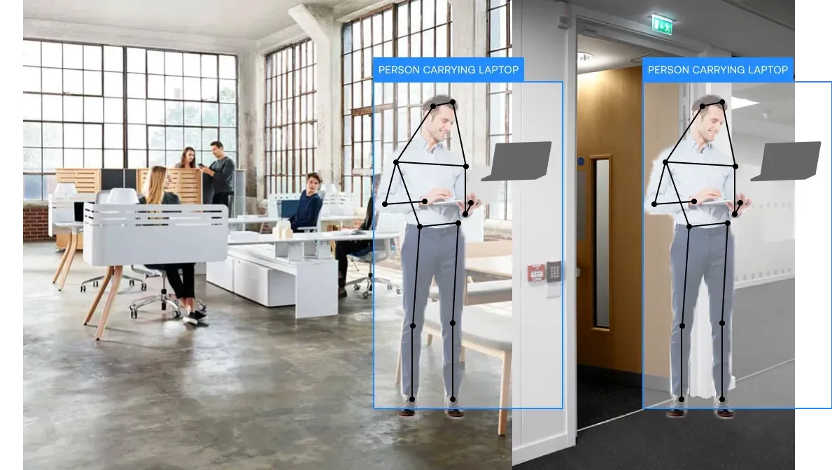 On top of that, rather than simply identifying motion or objects, computer vision intelligence identifies behaviors based on numerous aspects of the scene and can accurately distinguish threat behaviors from normal behavior. For example, in most cases, people walking around with laptops in an office setting is normal behavior. If someone tailgates to enter a secure area and then leaves with a laptop that is likely a security threat.