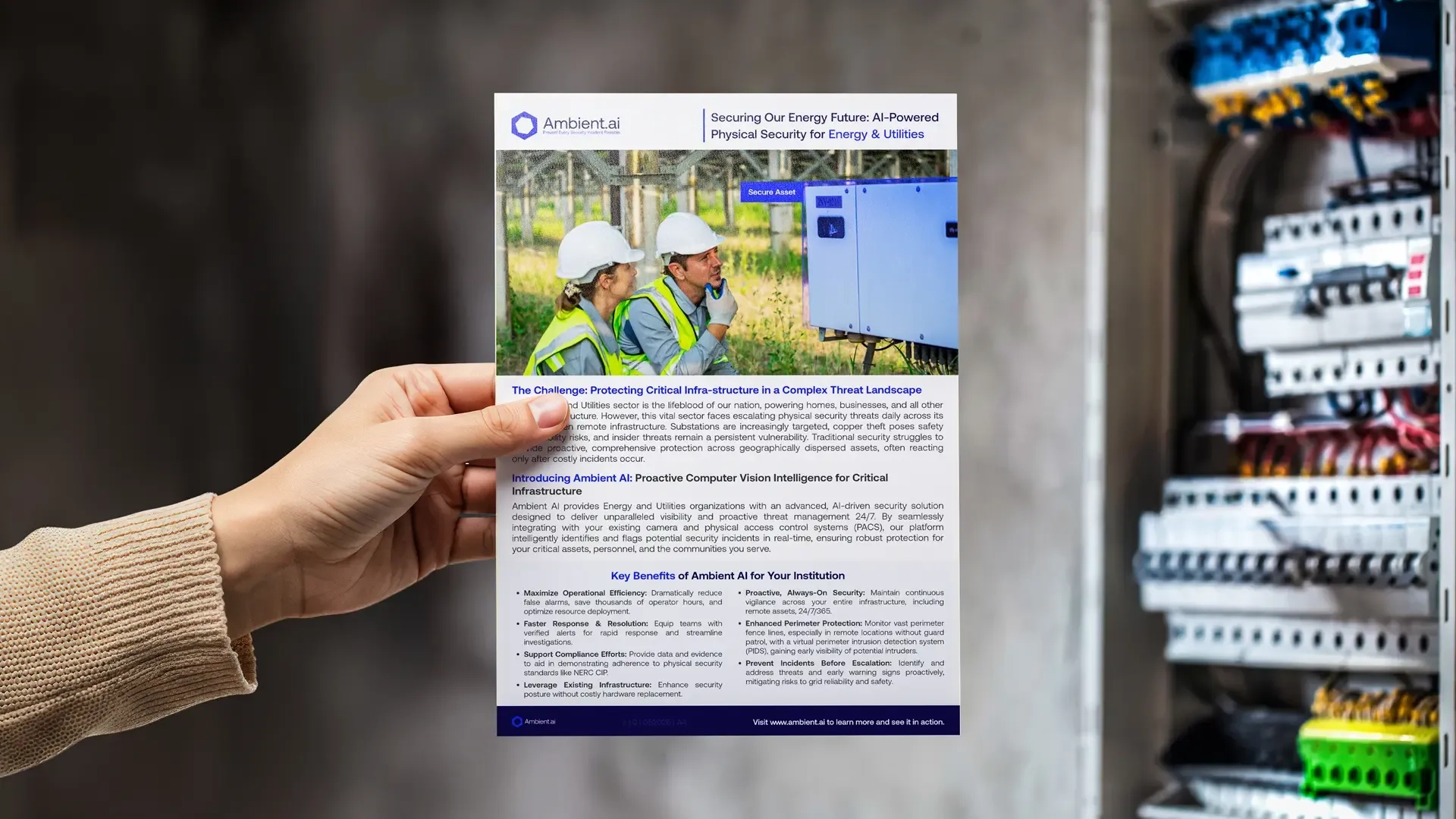 Ambient AI delivers a specialized AI-powered security overlay, purpose-built to safeguard the sprawling and often remote critical infrastructure of the Energy & Utilities sector. We empower you to proactively defend against threats to substations, transmission lines, and generation facilities by leveraging your existing cameras and access systems. Our platform intelligently detects perimeter intrusions, suspicious activity around vital equipment, and early indicators of potential sabotage or theft, enabling rapid, informed responses to protect grid reliability, ensure public safety, and support your crucial NERC CIP compliance obligations.